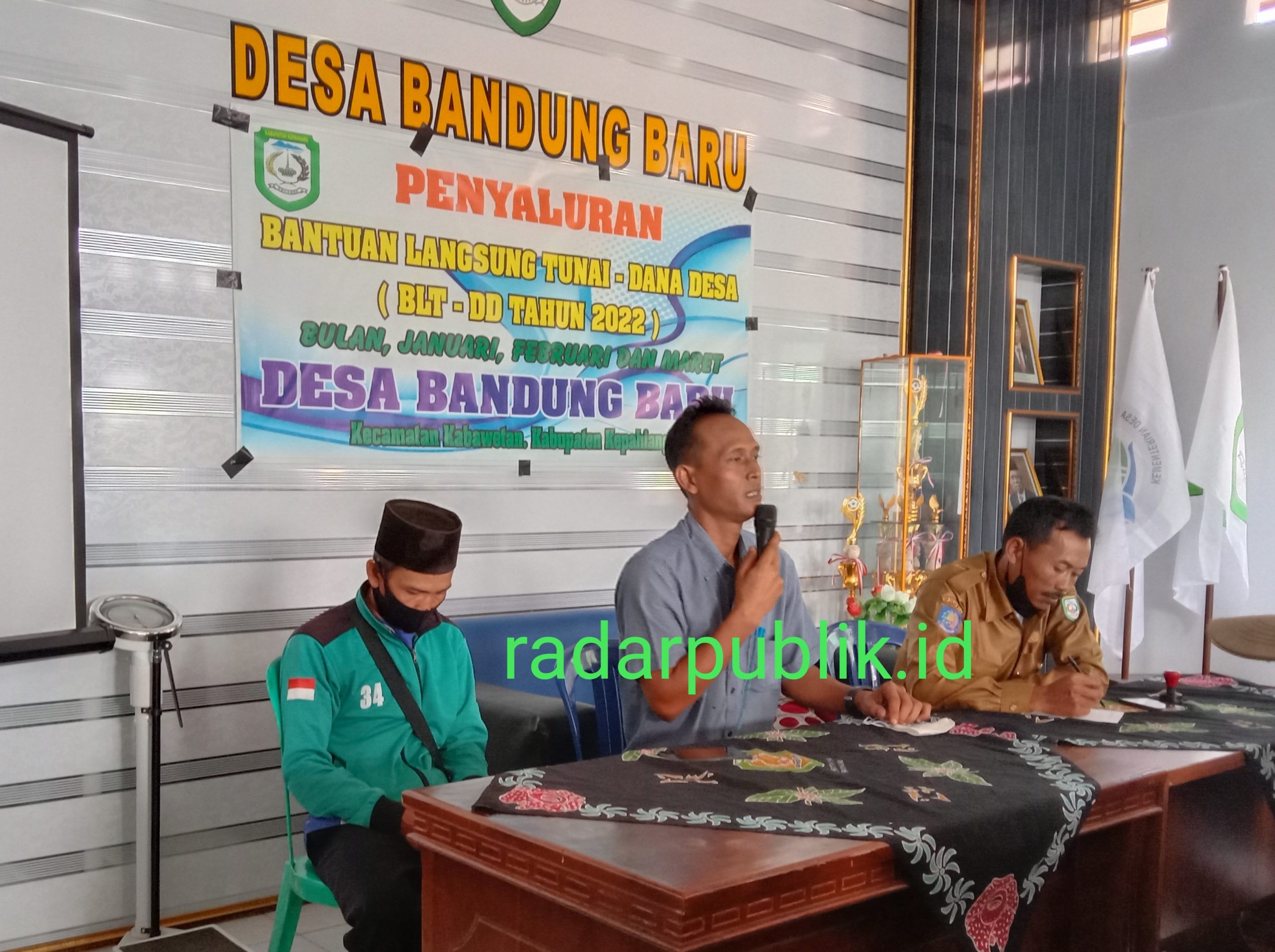 Sementara itu camat ikan mas dalam kesempatannya menyampaikan apresiasi yang tinggi atas kinerja pemerintah desa Bandung baru yang telah dapat menyalurkan BLT-DD kepada KPM, semoga bantuan yang sudah diterima oleh KPM tersebut dapat sedikit meringankan beban ekonomi masyarakat terlebih lagi sebentar lagi kita akan menghadapi hari raya idul Fitri. Tutup camat