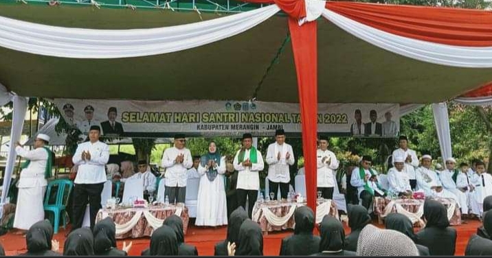 Merangin,Radarpublik.id (KEMENAG) Kantor Kementerian Agama RI Kabupaten Merangin kembali memperingati Hari Santri Nasional (HSN) di Bumi Tali Undang Tambang Teliti di Kota Bangko, Kabupaten Merangin-Jambi di Sambut sangat antusias Oleh para santri.