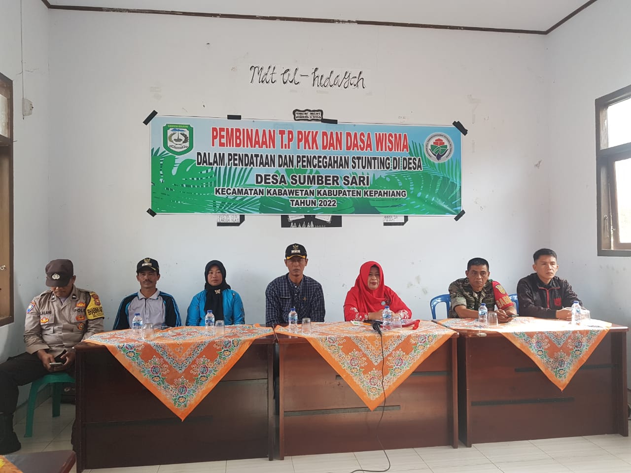 Pemerintah Desa Sumber Sari Kecamatan Kabawetan Kabupaten Kepahiang Melaksanakan Pembinaan T.P PKK dan Dasa Wisma guna Pendataan dan Cegah Stunting,Jumat(16/12/2022) Bertempat di Balai Desa