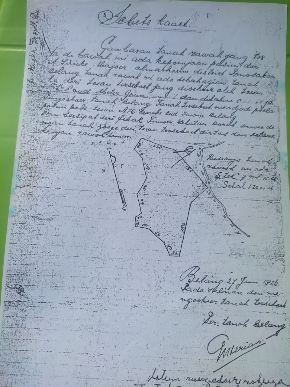 Mendengar kabar berita tersebut (17/12/23) Buang Sineke adalah salah satu ahli waris dengan nada geram kepada radarpublik.id menyampaiakan kalau memang kepala desa ini sangat keras kepala “sudah berkali kali saya sampaikan sama kepala desa agar jangan coba coba mengukur tanah keluarganya karena tanah tanah tersebut telah memilki register tanah desa tahun 1926 dan warkah SK 1901.