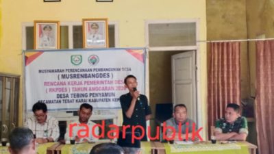 Kepahiang, radarpublik.id – Pada tanggal 3 Oktober 2025, Pemerintah Desa Tebing Penyamun, Kecamatan Tebat Karai, Kabupaten Kepahiang, mengadakan musyawarah desa untuk menetapkan Rencana Kerja Pemerintah Desa (RKPDes) tahun anggaran 2026. Acara ini berlangsung di balai desa dan dihadiri oleh berbagai elemen masyarakat.